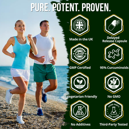 Provides potent antioxidant protection, supports joint flexibility and comfort, contributes to normal immune function, and includes black pepper extract for improved absorption. Suitable for vegetarians and vegans.